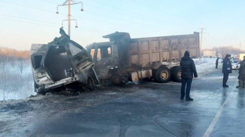 Погибли все, кто находился в машине. Фото: 5-tv.ru Страшная авария с участием машины скорой помощи произошла сегодня под Томском. Медики спешили на вызов к беременной женщине. Микроавтобус, ехавший по главной дороге, на полном ходу столкнулся с грузовиком, который вырулил со второстепенной. Сразу вспыхнул пожар. Погибли все, кто находился в машине. Помимо водителя и медсестры, скончалась заместитель главврача томского областного перинатального центра и заведующий отделением взрослой реанимации. Водитель грузовика в больнице, против него возбуждено уголовное дело.