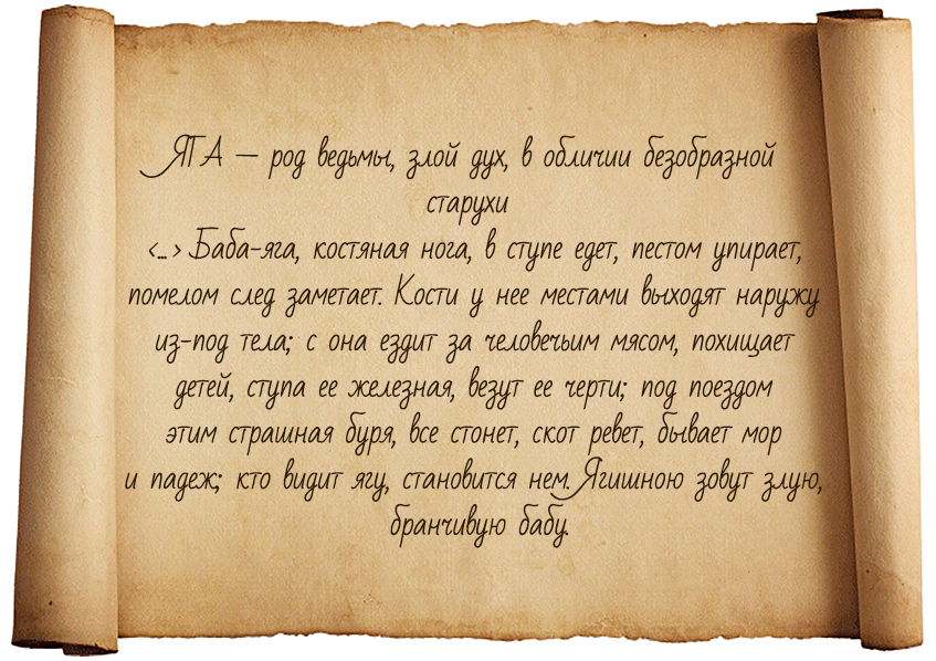 Баба-Яга – всеми известный с детства персонаж сказок и фольклора. О ней есть заметка даже в словаре О. Даля: Сказки нам добавляют, что живет она в избушке на курьих ножках и заманивает детей в печь. Эти факты мы знаем с детства. Но откуда же появилась Баба-Яга? Существует множество гипотез о ее происхождении, мы рассмотрим одну из них: По поверьям угро-финнов, который уходит корнями во времена язычества, умершие помогали им с того света. Поэтому после смерти близкого человека делали куклу – «бабу», в нее и вселялся дух умершего. Затем заворачивали эту куклу в шубу, сшитую из шкур животных – «ягу». Следующим этапом шло создание священной постройки – сруба без окон и дверей, туда и помещали куклу. В этот же сруб клали драгоценности и личные вещи покойного, а после относили в густую чащу леса. Эту постройку, в качестве защиты от диких зверей, устанавливали на стволах срубленных деревьев. Однако не только животные могли нанести вред конструкции. Многие люди в надежде поживиться драгоценнос