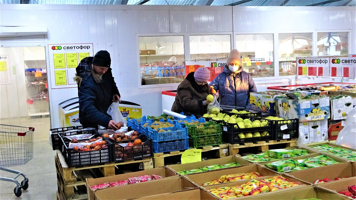 Вот прошлый раз накупила в Светофоре, такие вкусные оказались! Пожалела, что мало купила груш. Привет, друзья, с утра пораньше я снова в Светофор, по дороге иду и надеюсь, что не разочарует он и сегодня! И точно, смотрите, сколько народа в холодильном отделении, не мне одной хочется фруктов!