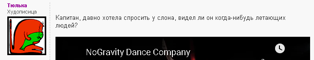 ===== Земля! Земля! Слон на связи! Тюлька писала: давно хотела спросить у слона, видел ли он когда-нибудь летающих людей? В одном африканском племени шутят: когда слон приходит в бешенство, часть людей, которым не повезло присутствовать при этом, начинает летать, а другая - превращается в отбивную. Чёрный юмор южных людей. Но речь ведь не об этом?