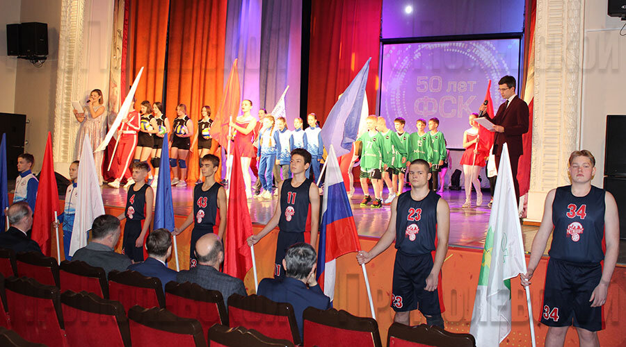 В большой зал Дворца культуры Северского трубного завода под звуки спортивного марша входят юноши и девушки со спортивными атрибутами – лучшие полевские спортсмены, победители и призёры городских и областных соревнований. Завершают красивое шествие флагоносцы. В их руках флаги Северского трубного завода, Полевского и России.