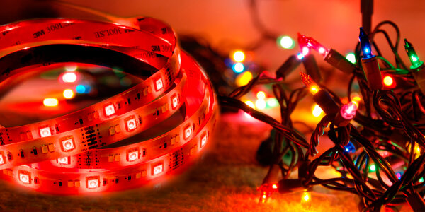 Итак, в левом углу традиционная разноцветная гирлянда на 8 (или более) программ с такой маленькой зелёной коробочкой. Против неё в правом углу, на кухне, на шкафу, за ТВ-консолью, на ёлке - да где угодно выступает светодиодная лента. Первой начинает классическая гирлянда на 8 программ. Она уверенно бьёт низкой ценой, большой длиной и понятным управлением. А вот и её недостатки, которыми может воспользоваться противник: На ринг выходит светодиодная лента EKF! Умная лента EKF сразу же выдаёт победную серию преимуществ: Всего пара недостатков в виде чуть большей цены и длины 3 метра не помешали светодиодной ленте EKF одержать победу! Тем более они оправданы долгим сроком службы и множеством вариантов использования в любое время