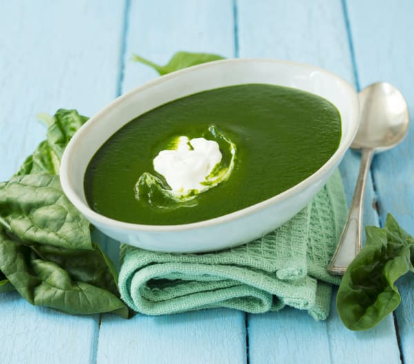 Пюре из шпината - нежный и питательный гарнир, который полезен для людей всех возрастов. Самостоятельно приготовить блюдо в домашних условиях не сложно. Ингредиенты - 100 г репчатого лука, разрезанного пополам - 1-2 зубчика чеснока по вкусу и размеру - 30 г сливочного масла - 20 г пшеничной муки - 150 г взбитых сливок - 1 ½ чайной ложки соли - ¼ чайная ложка черного перца, молотого - ¼ чайная ложка мускатного ореха, молотого - 500 г листового шпината, свежего - 50 г воды в зависимости от желаемой консистенции (по желанию) - Сметана для гарнира (по желанию) Приготовление 1. Положите лук и чеснок в Миксерную чашу, измельчите 4 секунды / скорость 5 и надавите лопаткой. 2. Добавить масло и обжарить 3 мин / 120 ° C / скорость 1. 3. Добавить муку, взбитые сливки, соль, перец и мускатный орех и довести до кипения 4 мин / 100 ° C / скорость 1. Тем временем шпинат хорошо вымыть и нарезать крупными кусочками. 4. Добавьте нарезанный шпинат, измельчите лопаткой 5 сек / скорость 7 и надавите лопатк