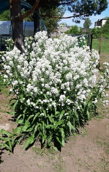 Купленная нами дача, как оказалось, периодически подкидывает приятные сюрпризы. Один из таких - цветущий хрен. Да-да, именно хрен. Сначала мы не поняли, что за растение. Высокий куст, облако белых венчиков цветов, похожих на белую сирень, а аромат... Медово-сладкий, нежный, очень притягательный, особенно для пчел. Именно этот аромат и смутил. Не может же хрен так пахнуть?! Это же острая, пряная трава. Каково ж было наше изумление, когда кустарник отцвел, стали нарастать крупные, хреновые листья. Выкопав, для проверки, корешок, точно удостоверились, что это точно он. Так что, как говорится, не верь глазам своим. Почитав, узнала, что действительно хрен может цвести, но довольно редко. Мой же куст цветет каждый год. Чудесное украшение сада и замечательная любимая приправа.