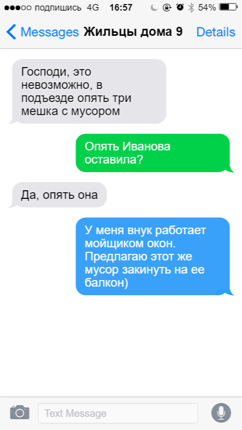 Соседка со скверным характером может создавать кучу проблем, наряду со старой канализацией и плохой звукоизоляцией в доме. В интернете можно найти сотню историй, где вредные женщины не давали спокойно жить людям в квартирах напротив или на этаж выше/ниже. Одни постоянно пакостят в подъездах, выкручивая лампочки и выкидывая мусор на чужие коврики. Другие пускаются во все тяжкие, призывая на помощь правоохранительные органы, различные коммунальные службы. Порой жизнь с такой соседкой превращается в настоящее мучение! Представляю вам подборку подобных сообщений, где жильцы обсуждают неприятную соседку или ведут разговор лично с виновницей всех бед в доме. Все переписки придуманы автором на основе личного и чужого опыта. Присутствует гипербола (чрезмерное преувеличение). Если вам не по душе немного "злой" контент, то предлагаю ознакомиться с моими добрыми переписками: с бабушкой, с котом и т.д. Надеюсь в этот раз оскорблений в комментариях будет меньше. Спасибо! Хорошо, когда жильцы дома