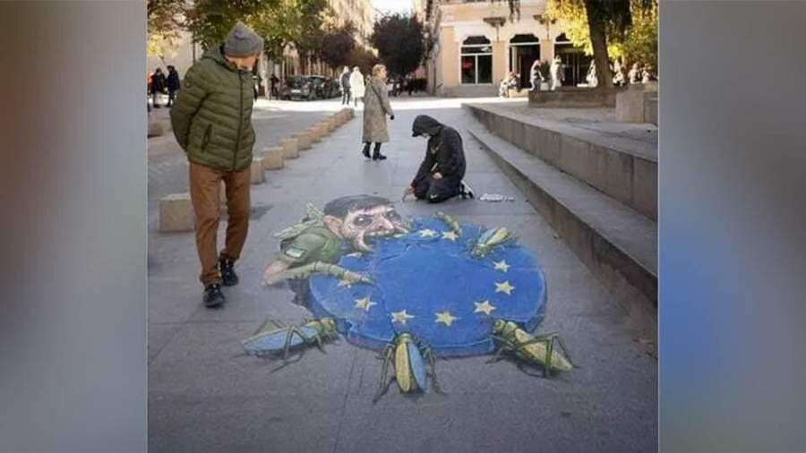 Граффити Зеленского в виде пожирающей ЕС саранчи появились в Европе