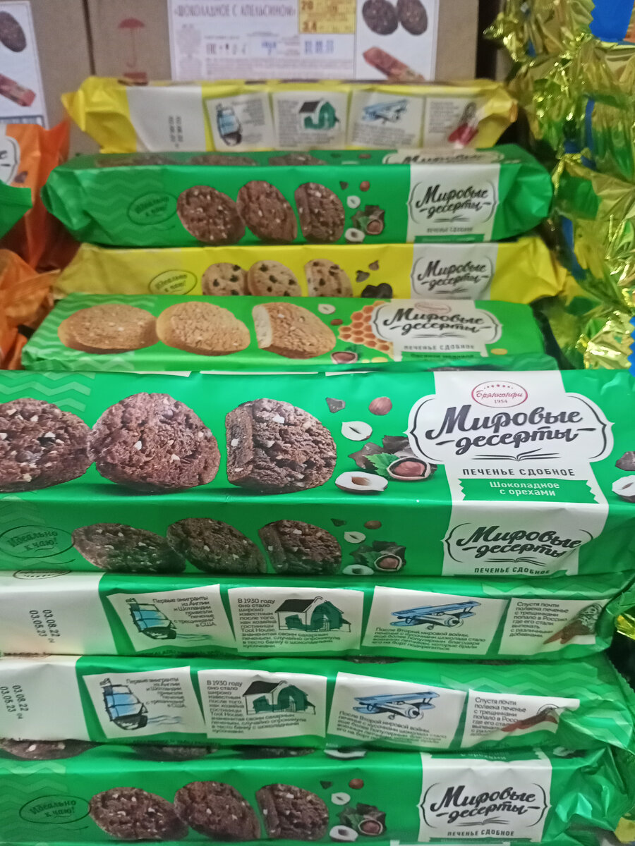 Дорогие читатели. Рада приветствовать вас на своем канале. Сегодня расскажу вам о новом поступлении товаров в магазине Светофор, и ценах на них. Давайте же посмотрим, что новенького появилось. Продуктовый отдел порадовал новыми кондитерскими изделиями. Печенье сдобное Мировые десерты в ассортименте. Произведено печенье в России. Упаковка печенья, весом 350 грамм, стоит 77.20. Печенье купили на пробу, понравилось, свежее, рассыпчатое, в меру сладкое. Печенье Говорушки со вкусом топлёного молока. Производит печенье компания Слада, Россия. Вес упаковки 1 кг, цена 111.90. Такие печенюшки тоже покупали, вкусные и недорогие. Дражже ПтиБон, в ассортименте. Производитель Россия. Вес упаковки дражже 500 грамм, цена 89.40. Сухое молоко Белая Королева, с массовой долей жира 26%. Произведено молоко в России. Упаковка весит 400 грамм, стоит 140.30. Такое молоко приобрела для выпечки, пока по качеству ничего не могу сказать, не открывала упаковку. Позже напишу отзыв. Хлопья Царь 4 злака. Производи