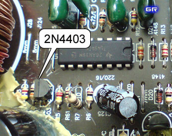 Причиной неисправности оказался транзистор 2N4403 в цепи микросхемы TL494CN (преобразователь). Один из его переходов был пробит. Кроме этого сгорел резистор на 10Ω (Ом). На фото R7 – это он. Пока резистор "терпел" – усилитель включался, но уходил в защиту. Как перегорел – усилитель перестал включаться вообще.