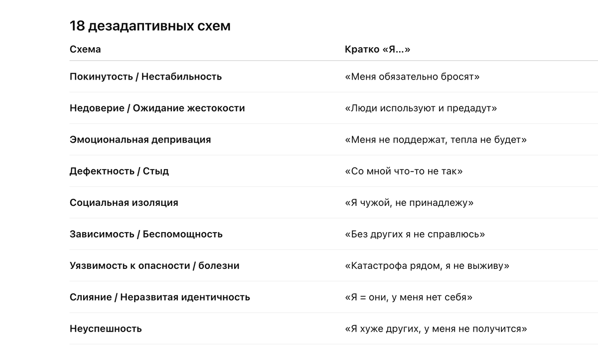 Схема-терапия — это метод психотерапии, который помогает разобраться, почему мы снова и снова попадаем в одни и те же трудные ситуации и как перестать наступать на старые грабли. У каждого ребёнка есть базовые потребности: Если эти потребности закрывались хорошо — человек растёт уверенным.