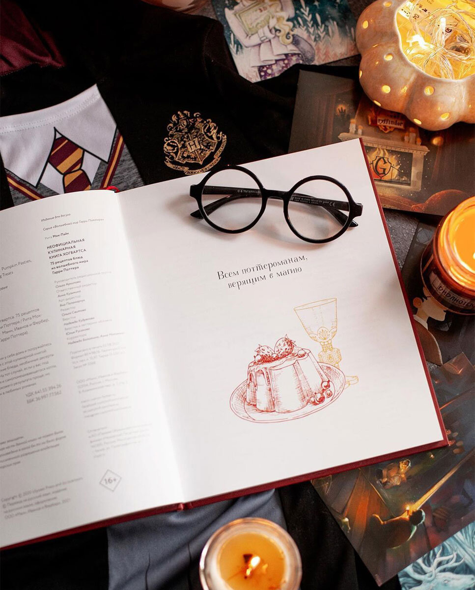 Благодаря простым, но вкусным рецептам из книги Дины Бухольц «Поваренная книга Гарри Поттера» 16+, можно почувствовать себя частью волшебной вселенной, подав на стол французский луковый суп от Кикимера, классический мясной пирог миссис Уизли, тыквенные пирожки из Хогвартс-экспресса, лосось медовый в укропном соусе, большие пышные блины, апельсиновый джем, мясной пирог Молли, тарт с патокой, горячий шоколад, кокосовый лед, трайфл с шоколадным кустардом и карамельной корочкой и многое другое.
