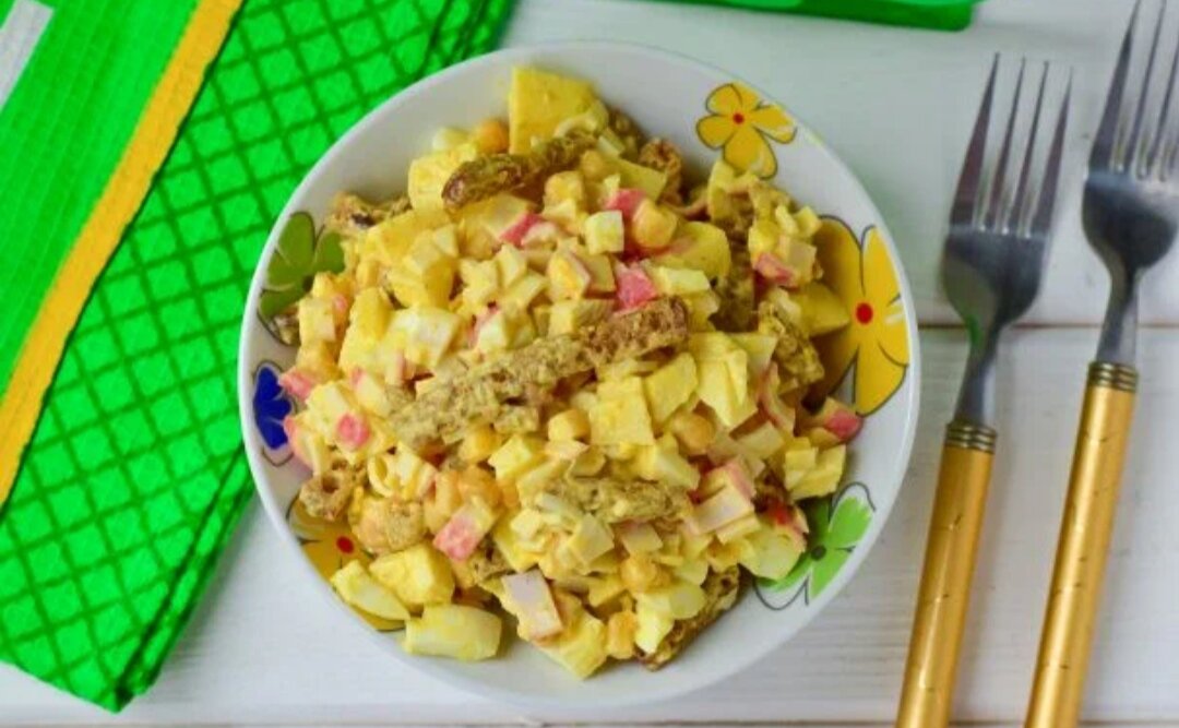 Добрый день, дорогие мои подписчики и гости! Предлагаю рецепт лёгкого, быстрого и вкусного салата. Для приготовления понадобится: 1 упаковка сухариков со вкусом сыра, 200 грамм крабовых палочек, 2 зелёных яблока, 1 банка консервированной кукурузы кукурузы, 3 варёных яйца и майонез по вкусу. Яблоки очистить и нарезать небольшими кубиками. Крабовые палочки и яйца тоже нарезать кубиками. С кукурузы слить жидкость. В салатнике соединить крабовые палочки, яйца, яблоки, кукурузу. Добавить майонез, всё хорошо перемешать. Перед подачей добавить сухарики. Приятного аппетита! Если Вам понравился рецепт, ставьте 👍 и подписывайтесь на мой канал! #салат с сухариками #салат с крабовыми палочками @Вкусно и просто!