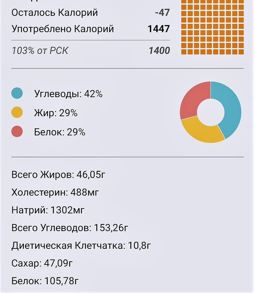 Начинаю привыкать к подсчету калорий, напомню, что я прерывалась на выходные, теперь считаю уже четвертый день. Пока не могу сказать, что это вошло в привычку, но уже начинаю получать удовольствие от самого процесса. Вес начал уходить. Вчера получилось питаться на 1400 калорий без голода. Сегодня отвес – 500 гр Считая калории, мне стало легче контролировать себя по вечерам, а может быть, я стала более-менее добирать белок и жиры, поэтому стала меньше срываться. Хотя пока рано делать поспешные выводы. Когда я в начале лета занялась дробным питанием, то тоже взялась за это с энтузиазмом и сбросила за месяц 4 кг, а потом этот позитивный настрой куда-то улетучился… Честно говоря, очень боюсь, как бы мне подсчет калорий не вышел боком. Ведь важно не начать вписывать сладкое в ежедневный рацион, замещая им нормальную и полезную пищу, но вписываясь в дневной калораж. А от меня это вполне можно ожидать)) Надеюсь, что выполнение дневной нормы БЖУ даст свой результат, организм насытиться полезны