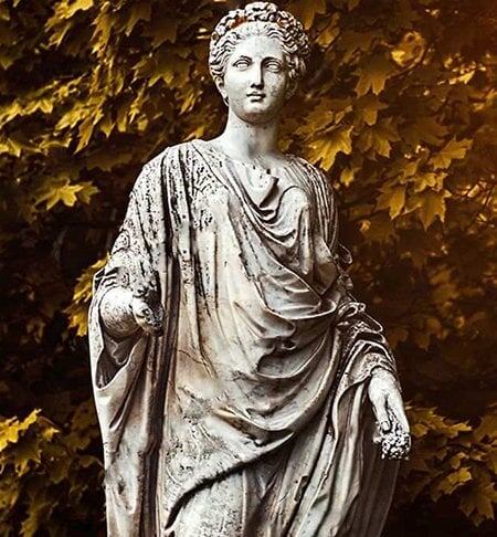 В древнегреческой религии и мифологии богиней земледелия была Деметра. Зерно, в частности, ассоциировалось с ней, но она также была богиней-матерью растительности в целом. Ей также поклонялись как богине плодородия, деторождения и брака. В искусстве Деметру часто изображали несущей снопы зерна или корзину, наполненную зерном, фруктами и цветами. Римляне отождествляли свою богиню Цереру с Деметрой. Деметра была дочерью титанов Кроноса и Реи и сестрой Гестии, Геры, Аида, Посейдона и Зевса. От Зевса Деметра была матерью Персефоны.
