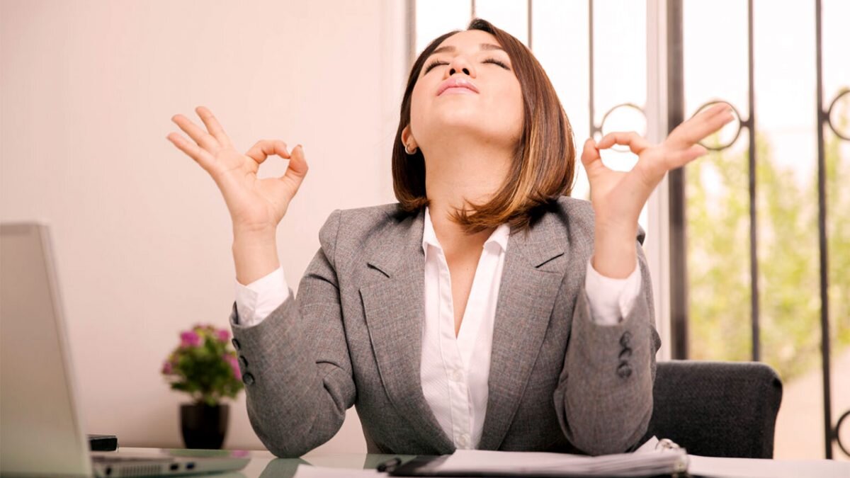 Начните с глубокого дыхания. Закройте глаза или сосредоточьтесь на фиксированной точке. Сначала вдохните в течение 4 секунд, затем сделайте короткую паузу и выдохните в течение 8 секунд. Повторите это не менее четырех раз. Делать это можно не только на работе, но и дома,