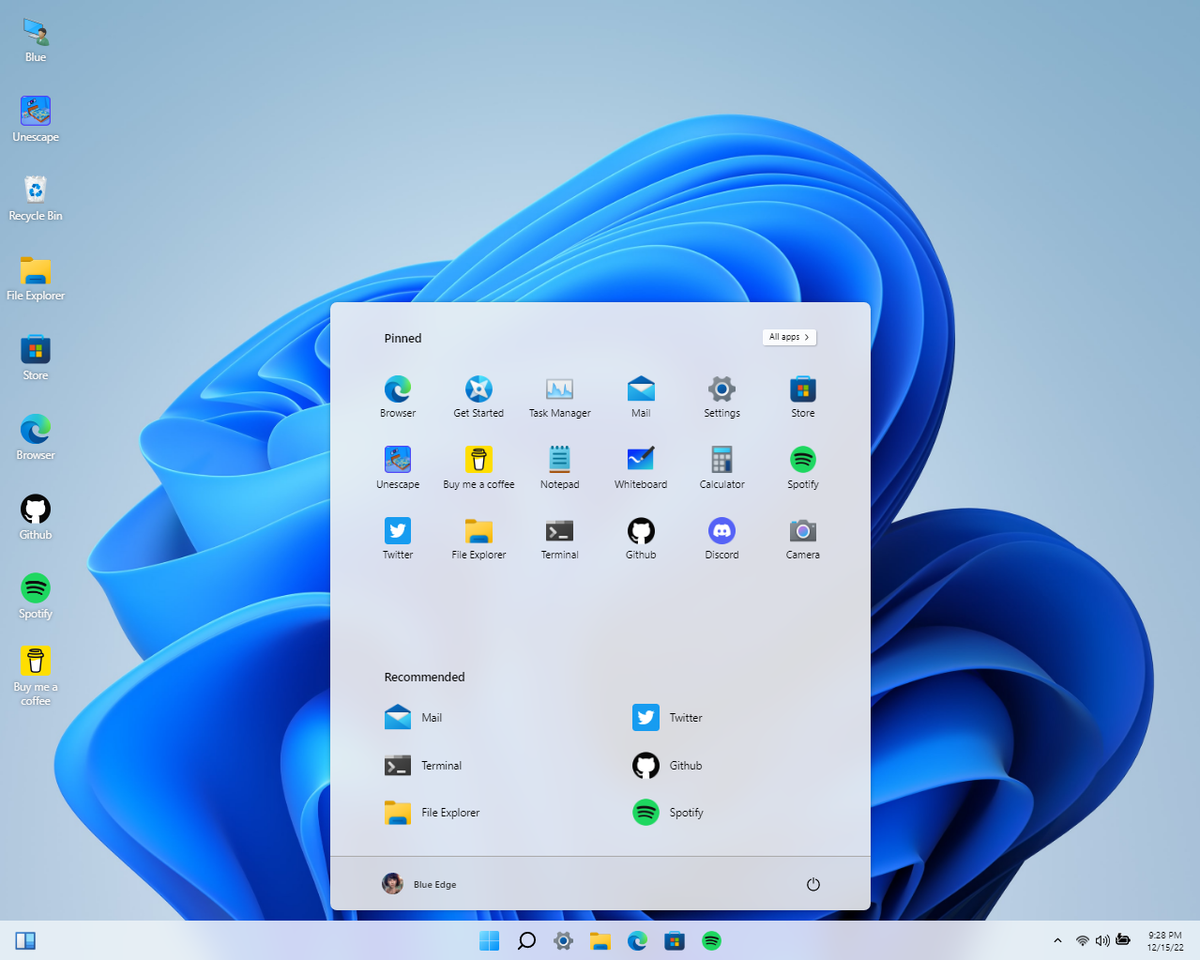 Здесь имитированы все обновлённые иконки и значки. Общий дизайн интерфейса тоже полностью идентичен. Все функции и приложения на месте — есть Microsoft Edge, Microsoft Store, «Терминал», «Пуск», «Панель уведомлений» и всё остальное.