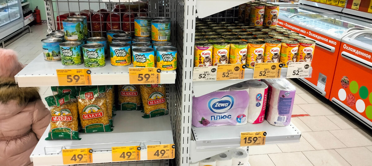 Много скидок на Макароны, разных фирм. Много скидок на консервированную продукцию.