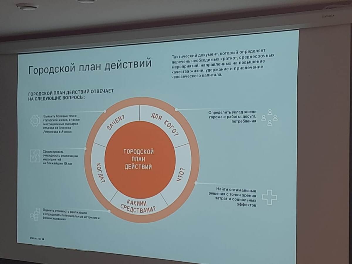 В Ачинске на градостроительном форуме представлен план развития города на десятилетие Развитие Ачинска до 2033 года стало ключевой темой градостроительного форума, который был организован РУСАЛом накануне днём: - В нём приняли участие проектировщики и урбанисты консалтингового бюро «Стрелка», ачинские депутаты, предприниматели, представители культурного сообщества. Профессиональное мнение каждого из них имеет общественную значимость и опирается на экспертное знание. Специалисты КБ «Стрелка» представили участникам форума пошаговый план действий по улучшению качества жизни и решению таких задач, как: реставрация памятников архитектуры исторического центра, благоустройство улиц и ремонт дорог, строительство социального и коммерческого жилья, спортивных объектов, набережной Чулыма, новой школы, развитие велосипедно-пешеходных маршрутов снижение уровня запыленности в городе на 40% и многое другое. По каждому из этих вопросов спланированы конкретные шаги и решения. Все проекты м