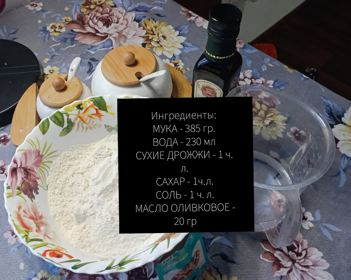 Всем привет! Сегодня я расскажу, как делаю тесто для пиццы. ПРИГОТОВЛЕНИЕ: 1. Для начала смешаем сухие ингредиенты. В муку добавляем сухие дрожжи, затем сахар и соль. Перемешиваем. 2. В сухую смесь добавляем воду, затем оливковое масло. 3. Замешиваем тесто. Я замешиваю руками. 4. Глубокую миску смазываем оливковым маслом и кладём тесто. Накрываем полотенцем и ставим в тёплое место.