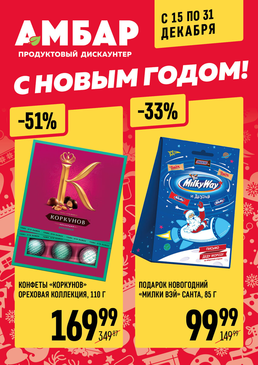 Каталог акций сети дискаунтеров "Амбар", действующих с 15 по 31 декабря 2022 года