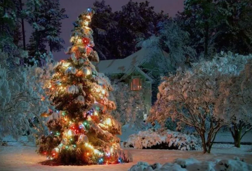Все бросились на крыльцо и замерли. Во дворе стояла огромная елка, украшенная и даже гирлянды висят, только подвести электричество и можно зажигать.
