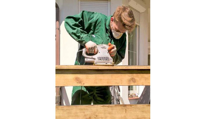 В фотогалерее я предоставлю инструкцию своими руками шаг за шагом по ремонту деревянных перил. Работа по её обновлению может занять около недели. Это зависит от размера перил и степени их разрушения. Начнем с очистки дерева, на больших и плоских покрытиях старую краску или лак легче всего удалить орбитальной шлифовальной машинкой. На узких элементах лучше использовать дельта-шлифовальный станок.