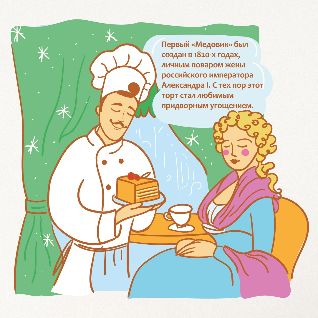 Последнее путешествие в этом году. Отправляемся в Российскую империю 1820-х годов. Медовик в том виде, который знаком нам сегодня, был создан в 1820-х годах на кухне императорского дворца. Вот как это случилось… Елизавета Алексеевна, жена Российского Императора Александра I, на дух не переносила мёд. Придворные повара знали об этом и, боясь попасть в немилость к императору, никогда не добавляли его в блюда. Под негласным запретом во дворце было всё – медовые пряники, печенье, коврижки и даже сбитень.