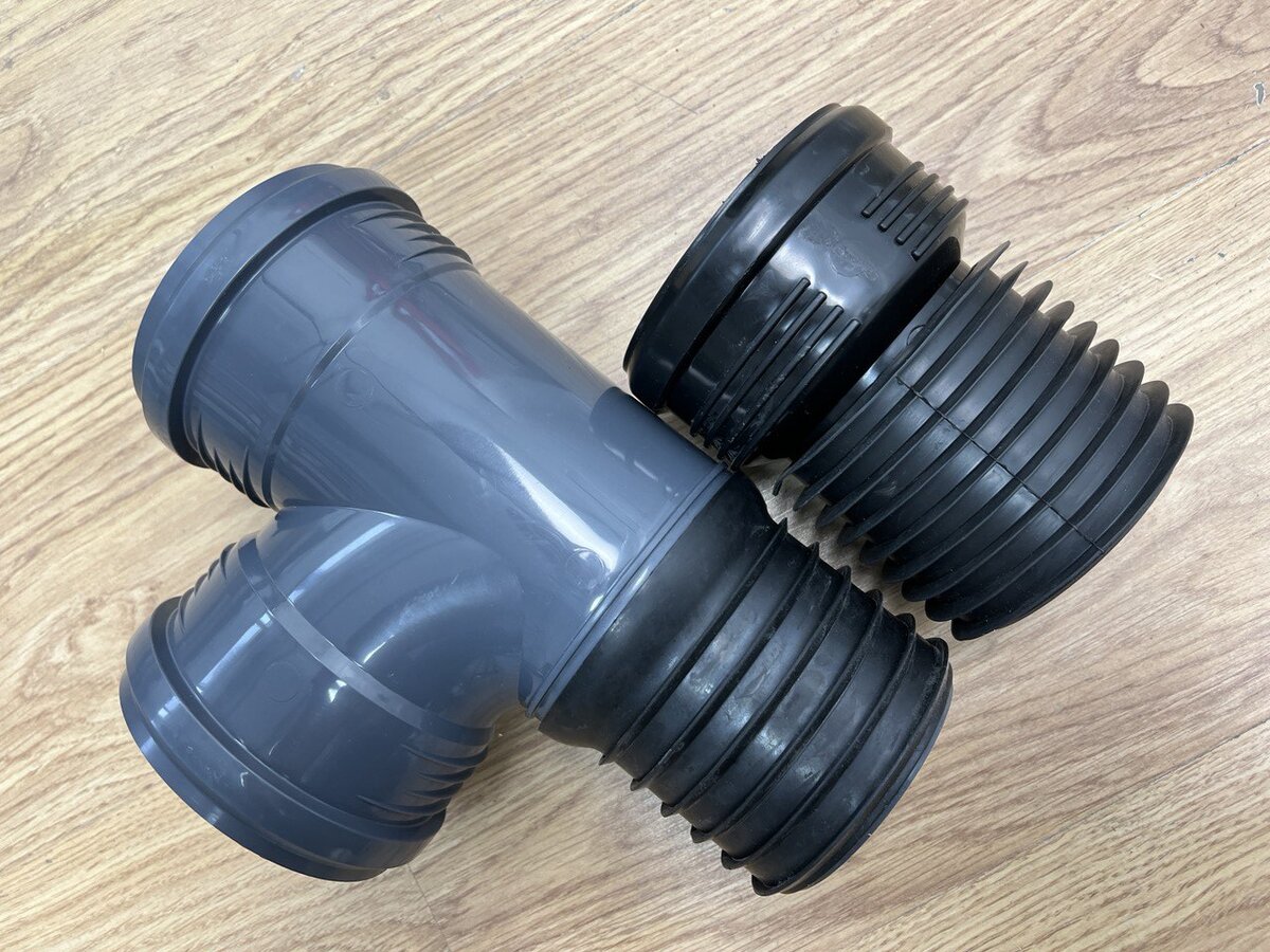 При схожем назначении эти фитинги все же существенно разнятся. В первую очередь высотой подъема, если у прямой муфты высота раструба 6 см, то у тройника высота первой точки сброса чуть больше 1 см, а это очень важный параметр, который позволяет сэкономить драгоценные сантиметры для заливки стяжки и правильного уклона труб. Восстановитель в ряде ситуаций - вещь просто незаменимая, но есть один нюанс, они заужают внутреннее сечение 110 трубы приблизительно до трубы 90 мм, про это забывать не стоит и нужно учитывать этот момент при монтаже. То есть в многоэтажках на стояках нижних этажей такой восстановитель не совсем к месту,