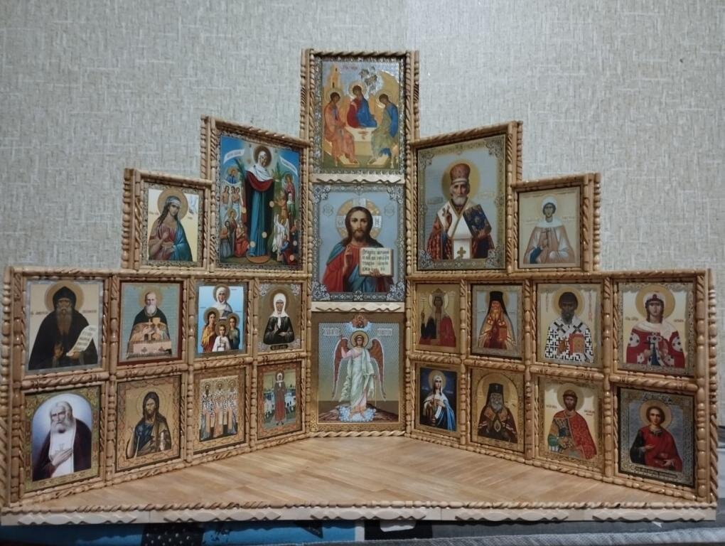 Приход храма во имя Святителя Николая города Сельцо Брянской области передал российским военнослужащим в зону специальной военной операции гуманитарную помощь и деревянный иконостас. Его сделал прихожанин Павел Головачев. Павел – талантливый мастер. Изготовленные им макеты брянских церквей украшают храмы, ставшие прототипами творческих работ. Об этом сообщает пресс-служба епархии региона. Подаренный воинам трехъярусный изящной резьбы иконостас включает в себя иконы Спасителя, Божией Матери и особо почитаемых и любимых в народе святых. В их числе – Николай Чудотворец, великомученик и целитель Пантелеимон, праведный Иоанн Кронштадтский, блаженная Ксения Петербургская и другие угодники Божии. Прихожанин брянского храма изготовил иконостас для российских военнослужащих