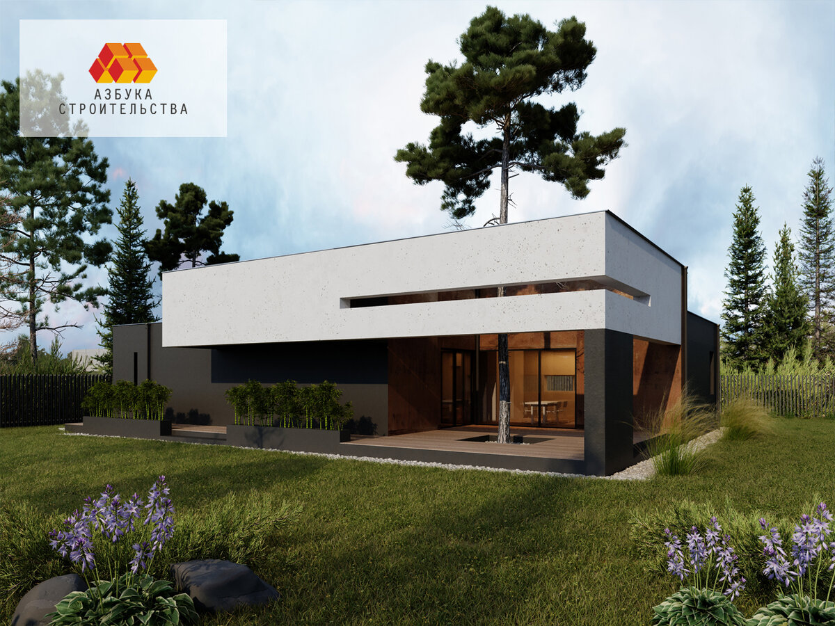 Современный дом площадью 141 кв. м с большой гостиной, 2 спальнями, кабинетом и сауной. Объемно-планировочное решение предельно компактно и функционально Из зоны холла-прихожей, в которой предусмотрено размещение вешалки и пуфа, можно попасть в гардероб, санузел и рабочий кабинет. Размещение кабинета вблизи входной зоны выполнено с целью отделения рабочего пространства от остальной части дома. По сути, оно представляет собой офис и может быть использовано как для сосредоточенной уединенной работы, так и для проведения рабочих встреч. Из окна офиса удобно наблюдать за прибывшими гостями и подготовиться к встрече. Просторная мастер-спальня с приватным санузлом и гардеробной позволяет разместить кровать King Size. В детской комнате комфортно разместятся два ребёнка - учтено размещение пары спальных мест, большого стола и шкафов. Зона гостиной и столовой имеет высоту потолка 4 м, что позволило обеспечить устройство светового фонаря, обеспечивающего дополнительное проникновение света. Гости