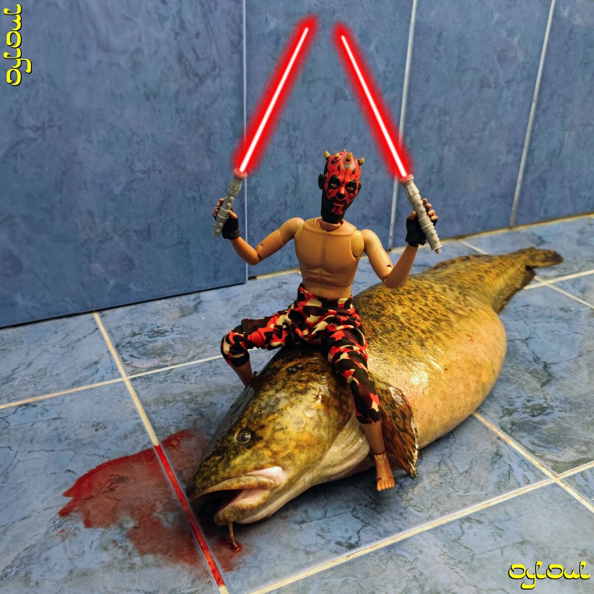 №22/97 (№996) PLANET CHE Фотосет для здравомыслящих — с устойчивой психикой и трезвым отношением к жизни. НЕ для тонких и чутких! В качестве реквизита использован рыбацкий трофей моего супруга. Субстанция красного цвета — имитация. Тем не менее, если вас такое травмирует — дальше не смотрите и не травмируйтесь. В противном случае — претензии не принимаются, я честно предупредила. И во избежание самовозгораний хочу отметить — никогда и никакими законами ни охота, ни тем более рыбалка запрещены НЕ будут! Потому что это священное право мужчины — на добычу! Отняв у него это право, вы вместо волкодава, готового убивать и умирать, защищая вас, получите сладенького пёсика, прячущегося за вашу спину и удирающего без оглядки при малейшей опасности. На мели мы налима лениво ловили… Вы меняли налима мне на линя… О любви не меня ли вы мило молили… И в туманы лимана манили меня… В субботу 10 декабря мой супруг вернулся с традиционной ежесубботней рыбалки с выдающимся трофеем! Еле дотащил, аж мешок