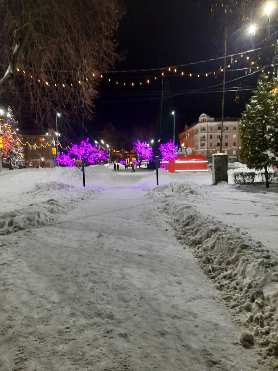 Предновогодний город... Как здорово прогуляться зимним вечером по городу, который начал готовиться к Новому году! Центр, центральная площадь всегда красиво украшены. На площади начали собирать новогоднюю ёлку. Теперь это высокий металлический каркас, обтянутый зелёной мишурой и украшенный огнями. Старая ёлка из живого лапника, украшенная разными игрушками, была лучше, на мой взгляд. Но моё мнение в меньшинстве, наверное, раз ёлку заменили. Не это главное, главное, что все мы ждём праздника, Нового года, ждём чудес и исполнения желаний) Как хотелось бы гулять вдвоём по городу, держась за руки, обнимаясь, смеясь, разговаривая обо всем и радуясь друг другу! Надеюсь, у всех тех, кто мечтает об этом, случится новогоднее чудо!) Будем верить и надеяться ) Пусть Новый год принесёт нам всем то, чего мы желаем! Исполнения желаний всем!)
