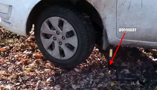 Первое что нам необходимо сделать – это обездвижить машину. Под одно из задних колес, если ведущими являются передние колеса, подкладываем с двух сторон кирпичи или подходящие по форме и размеру камни. Также в обязательном порядке устанавливаем автомобиль на ручной тормоз. Затем достаем из багажника домкрат и поднимаем одно из передних колес, неважно левое или правое. Выкручиваем колесо так, чтобы его было удобно раскручивать. Если мы подняли левое колесо, то его следует вывернуть до упора вправо и наоборот. Накручиваем на протектор колеса против хода движения веревку. Например бельевую, длиной несколько метров или мягкий трос для буксировки, привязав к концу веревки небольшую палочку и разместив на поверхности протектора поперечно. Ко второму концу веревки привязываем рычаг – деревянный стержень, который будет своего рода рукояткой. Включаем вторую передачу и поворачиваем ключ зажигания. Выбираем для себя удобное положение позади колеса и двумя руками резким рывком тянем веревку на се