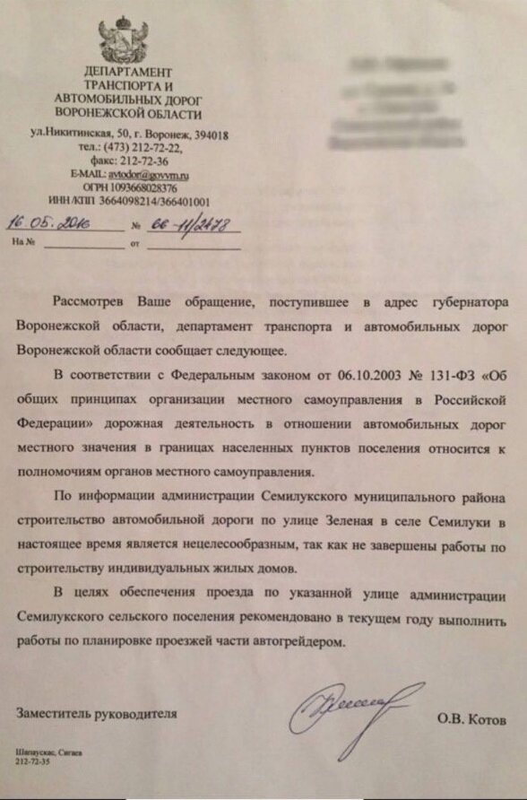Жители села Семилуки массово обращаются к президенту России с просьбой помочь с дорогой. Речь идет о полотне по улице Зеленой, которая ведет к комплексу "Донгор". Дорога там находится в ужасающем состоянии. Жители села Семилуки на протяжении многих лет куда только не обращались. Но все тщетно. Еще в 2016 году им отвечали, что ремонт дороги является нецелесообразным. Прошло шесть лет, а ничего не поменялось. Дорога становится все хуже, ямы все больше. Задав недавно вопрос в telegram-канал "Обратная связь" правительства Воронежской области, жители получили странный ответ о том, что ОБЩАЯ дорога находится в ЧАСТНОЙ собственности. Не поверив своим глазам, люди отправили официальный запрос в администрацию Семилукского района, которая переадресовала его главе администрации сельского поселения Шедогубову. На этом все и закончилось. Ответа не последовало. А ямы растут.. Жителям села не оставили выбор, и они начали массово писать президенту России Владимиру Путину о бездействии местной власти.