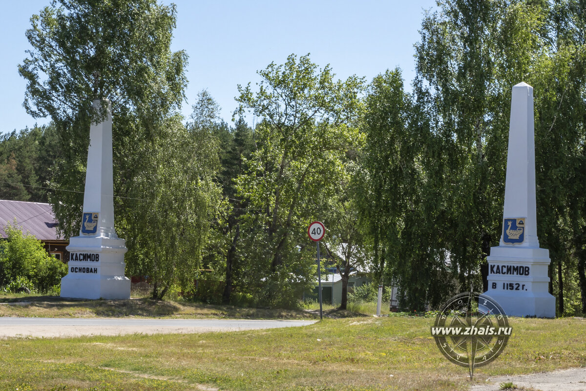 После 3-х часовой езды (время пути из Рязани в Касимов) мы оказываемся перед "Загородной заставой" (так условно назовем стеллу, расположенную при въезде в город по Загородной ул.), где в очередной раз можем узнать о дате основания Касимова - 1152 г.