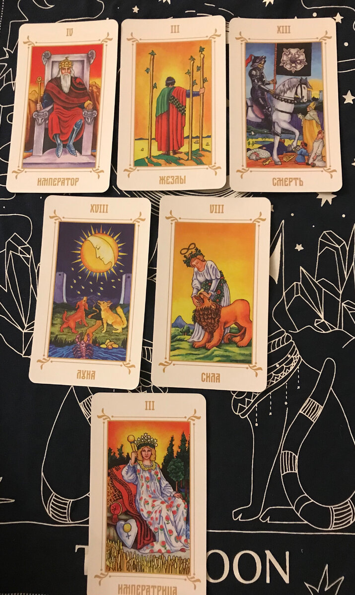 Сам расклад: Он "Император", Вы "императрица", но в данном раскладе это говорит только о том, что у вас были стабильные отношения, сожительство или официальная семья по паспорту. Карта "смерть" имеет значение, что прошлая жизнь изменилась, стала другой, все сняли "розовые очки" и увидели отношения в сером цвете, как раньше уже не будет, отношения зашли в тупик, дальше они станут только болезненнее и тяжелее. Карта "сила" указывает на то, что "императрица" так же сексуальна, желанна, востребована, на неё заглядываются, хотят. А вот со стороны "императора" он любит доминировать в Ваших отношениях и подавляет вас в ваших желаниях, потребностях. И подытожим картой "луна". В данном раскладе в сочетании с картой "смерть" Она показывает, что партнёр может быть вспыльчивым, готовым к конфликтам, и как следствие ваши отношения стали эмоциональной зависимостью. И в следствии расклада с таким сочетанием карт: "Император" символизируется как слабый мужчина, не в силах самостоятельно решать свои п