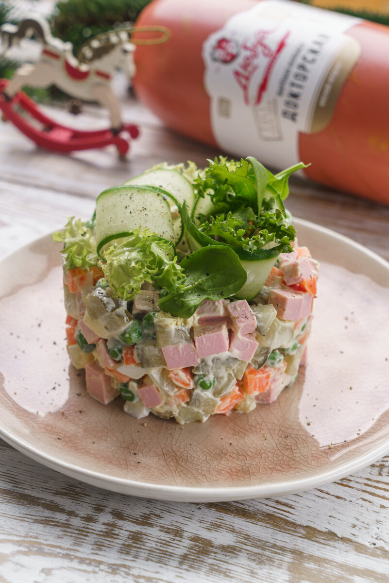 Традиционный салат "Оливье", без которого не обходится новогоднее праздничное застолье. Сохраняйте рецепт. Ингредиенты: - Картофель - 5 шт. - Морковь - 1 шт. (крупная) - Огурцы маринованные - 4-5 шт. - Горошек зеленый консервированный - 5-6 ст. л. - Колбаса Доктораская "Дюбуа" - 200 г - Яйца - 4 шт. - Майонез - 150 г - Соль - по вкусу - Перец черный молотый - по вкусу Приготовление: Картофель и морковь очистите. Нарежьте огурцы и положите в миску. На огурцы выложите консервированный горошек. Нарежьте вареную колбасу, морковь, картофель, яйца мелкими кубиками и добавьте в миску с горошком и огурцами. Заправьте оливье майонезом. Посолите, поперчите. Перемешайте салат и дайте ему несколько минут настояться. Салат "Оливье" подавайте сразу же после добавления майонеза и сметаны. Или заправляйте оливье непосредственно перед подачей. Приятного аппетита! #Дюбуа #Дюбуа_Рецепты #РецептыНаНовыйГод #Оливье #СалатыНаНовыйГод