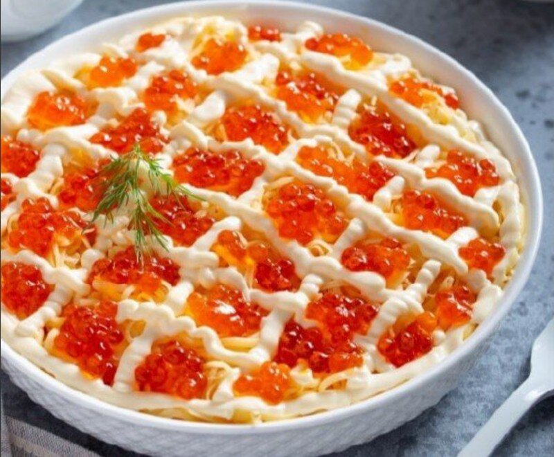 Дорогие мои читатели! Мои подписчики и гости канала!! С Наступающим Новым годом! Желаю вам мирного неба над головой! Здоровья, любви без условия и притязаний! Счастья в каждой мелочи! И благополучия вашим семьям! Сегодня я предлагаю вам приготовить один из этих салатов: Салат Дальневосточный Богатый белками, красочный и очень питательный. Что нам потребуется: Крабовые палочки - 100 г Сыр твёрдый - 80 г Яйца (отваренные) - 2 шт. Кальмары - 250 г Красная икра - 50 г Креветки - 250 г Майонез - 150 г Лавровый лист - 1 шт. Соль - 1 ч.л. Чёрный перец - по вкусу Зелень - для подачи Идём готовить: Кальмары отвариваем 2-3 минуты, остужаем и нарезаем соломкой. Если креветки варёно-мороженые, то опускаем их в кипящую подсоленную воду с лавровым листом и чёрным перцем (по вкусу) и доводим до кипения. Затем на дуршлаг и остужаем. Освобождаем от панциря. Крабовые палочки и отваренные яйца нарезаем кубиками. Теперь всё складываем в салатник, аккуратно перемешиваем и добавляем в салат немного май