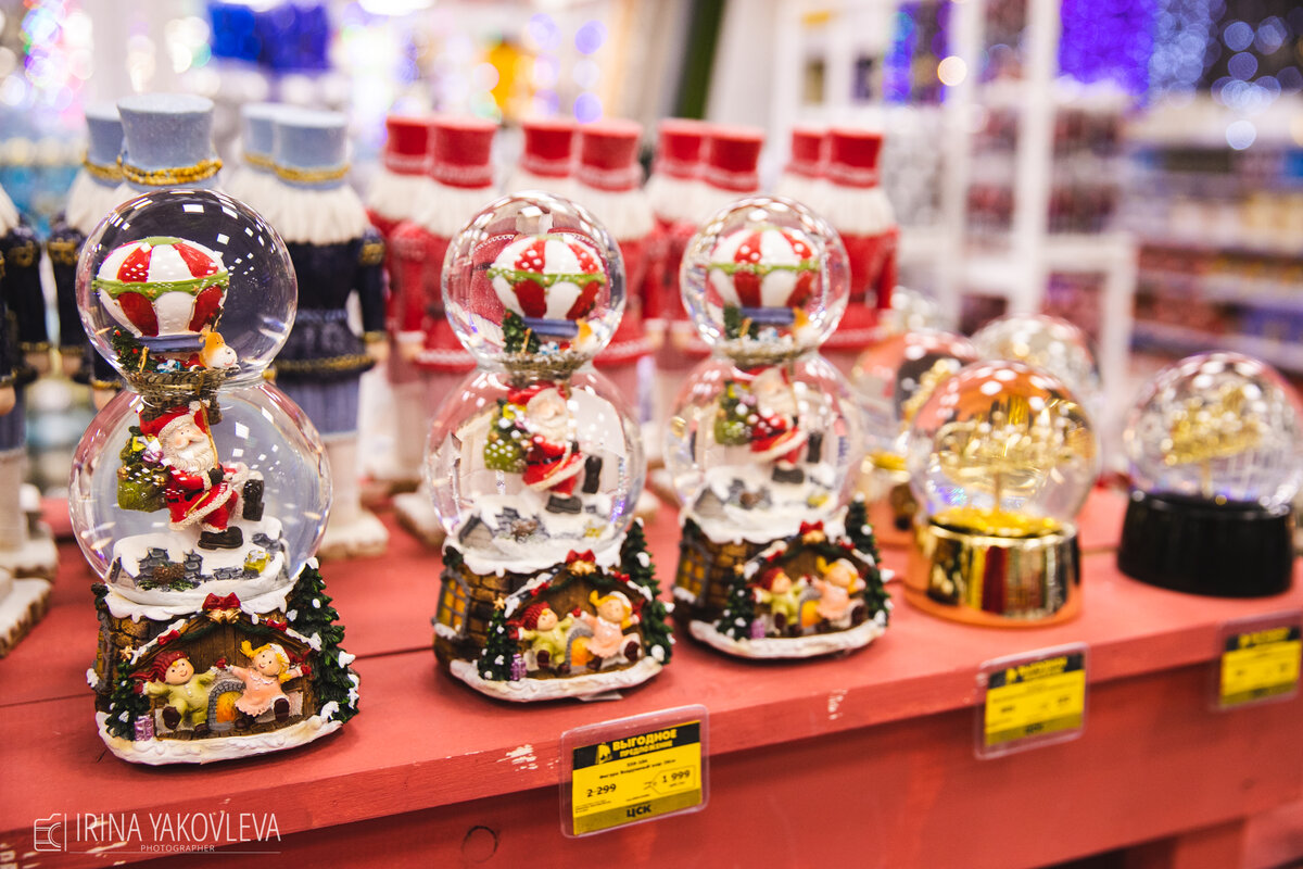 Комплекты шаров – от 330 (24 штуки) – 600 рублей (30 штук). Игрушки, напоминающие советские, – 150 и выше рублей за одну. В ассортименте – новогодние инсталляции от 1000 до 5,5 тысяч.