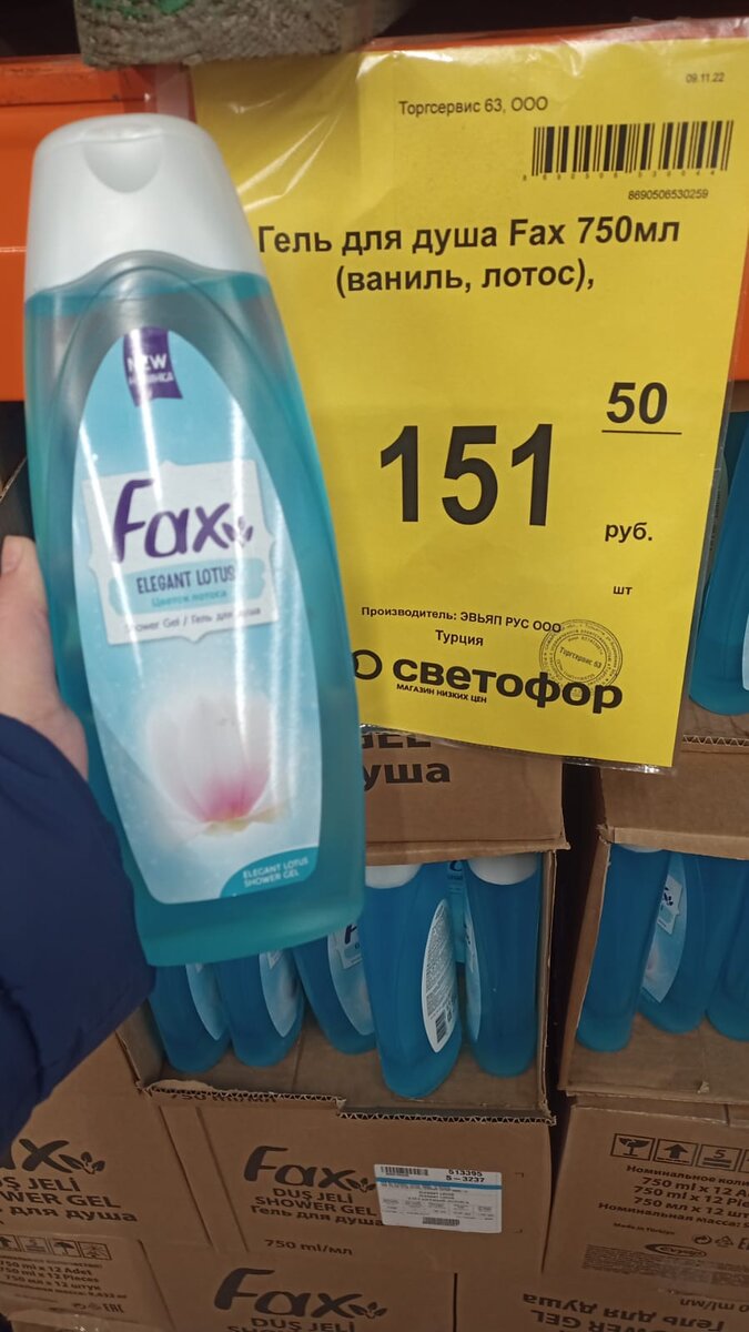 Добрый день, дорогие наши подписчики и гости канала. Спасибо, что зашли на наш канал. В очередной раз заехали мы в Светофор🚦, а там опять новинки. Начну с уходовых средств. Вот такой гель для душа Fax, объёмом 750 мл. (ваниль, лотос) за 151р.50к. Следующее, это бальзам для всех типов волос "Восстановление и укрепление" (кокос и хлопок), флакон объёмом 1 литр за 153 р. И ещё из этой же серии на полке магазина был представлен шампунь для всех типов волос "Увлажнение и сияние" (полевые цветы) за 93 р. тоже флакон объёмом 1 литр. И гель для душа "Мягкое очищение" для ежедневного ухода (спелые ягоды) за 97р.50 к. за флакон объёмом 1 литр. Ещё из уходовых средств увидела я чёрное мыло для бани и душа "Секреты древних стран. Роскошное питание". Мыло в удобной баночке объёмом 450 мл. за 108р. Моя сестра брала такое мыло и очень его рекомендует к покупке. Ей очень понравилось. А ещё из новинок появился детский гель для стирки "Буковки" в литровом красочном флаконе с ручкой за 156р.50