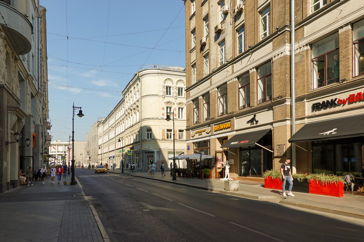 Начинаем сегодняшнюю прогулку от станции метро "Тургеневская" на Мясницкой улице. Поворачиваем в Армянский переулок, где стоят два интересных здания - "Дома причта Армянской церкви Воздвижения креста", которые строили и перестраивали весь XIX век. Левый в более-менее пристойном состоянии, правый с торца завешен строительной сеткой. Поворачиваем налево в Сверчков переулок, до которого еще не дошло благоустройство в виде расширения тротуаров и замены наружного освещения с убиранием проводки под землю. Вдалеке виден жилой дом с колоннадой, также перестроенный в XIX столетии. Палаты Сверчкова - у меня про них есть отдельный небольшой фоторепортаж. Выходим на Покровку. Слева в кадре огромный дом 7/9 - 11 - "Дом кооператива Военный строитель". Разумеется, это конструктивизм, а год постройки, само собой, 1928-й. А вот этот злосчастный особнячок уже лет 10 на ремонте. Его построил полковник Озеров еще в 1802 году. Один из читателей написал мне в интернете, что реконструкция близится к завершен