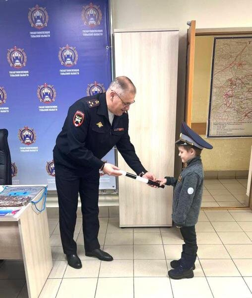 В канун Нового года сотрудники регионального управления Госавтоинспекции осуществили мечту 5-летнего Сергея Сафошина, который принял участие во Всероссийской благотворительной новогодней акции «Ёлка желаний». Мальчик мечтал встретиться с инспектором ГАИ и увидеть его работу. Начальник управления Госавтоинспекции УМВД России по Тульской области полковник полиции Вячеслав Лопатников помог воплотить его желание в реальную жизнь. В преддверии Нового года Серёжа смог посетить подразделения тульской Госавтоинспекции и почувствовать себя настоящим инспектором ДПС. Заветный день выдался насыщенным. Начался он со встречи с полицейскими Дед Морозом и Снегурочкой. Вячеслав Лопатников поздравил мальчика с наступающим Новым годом и подарил главные атрибуты для работы автоинспектора: полицейскую фуражку и настоящий жезл регулировщика. После краткого инструктажа юному гостю представилась возможность стать помощником инспектора ДПС лейтенанта полиции Евгения Воробьева. Вместе они останавливали автомоб
