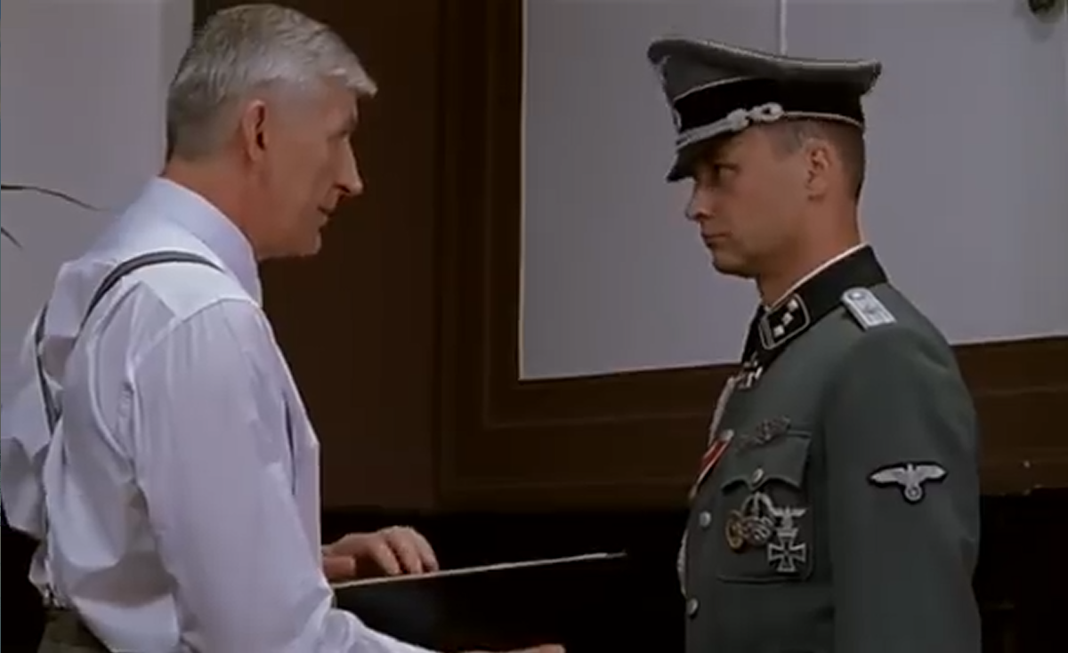 Дескать война скоро закончится, Германия проиграет, поэтому немцу лучше иметь покровителя в виде генерала Калязина. А это значит, что надо продумать как отмазать Калязина от провала крымской операции, генерал обещает подумать, после чего уходит.