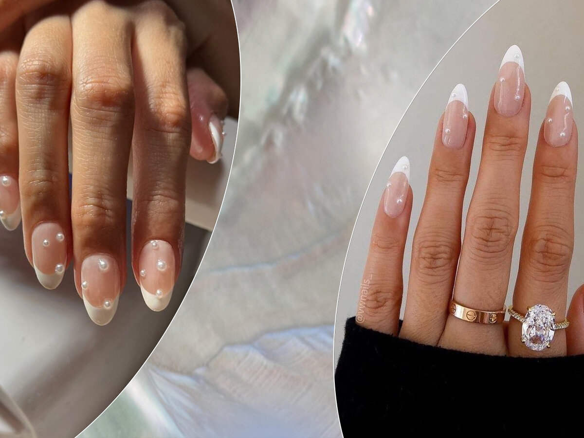 Френч с жемчужинками — романтичный маникюр на зиму для тонких натур