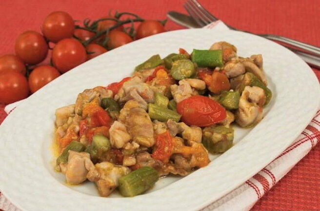 Быстрое второе блюдо, которое бесхлопотно готовится в мультиварке на обед или на ужин – это тушеная картошка с мясом и овощами. Кроме картофеля в блюдо можно добавлять различные замороженные овощные смеси, однако с молодыми сезонными овощами (спаржевой фасолью, кабачками, морковкой, зеленым горошком и др.) получится намного вкуснее! Ингредиенты Процесс приготовления: 1. Подготовьте все овощи для обжаривания, вымыв их. 2. Очистите морковь, лук и кабачок (если кабачок молодой, его можно не очищать от кожуры). 3. Мультиварку поставьте разогреваться в режиме «Подогрев», залив в чашу растительное масло. 4. Мясо вымойте, нарежьте на порционные кусочки. Чтобы приготовить блюдо быстро, рекомендуем использовать куриное филе. 5. Обжарьте кусочки мяса (курицы) в режиме «Жарка» минут 10-15, помешивая, пока они не зарумянятся. Выложите мясные кусочки в миску. 6. Лук нарежьте на четвертинки колец, а морковь нарежьте соломкой, колечками или натрите на крупной терке. 7. В раскаленном масле обжарьте с