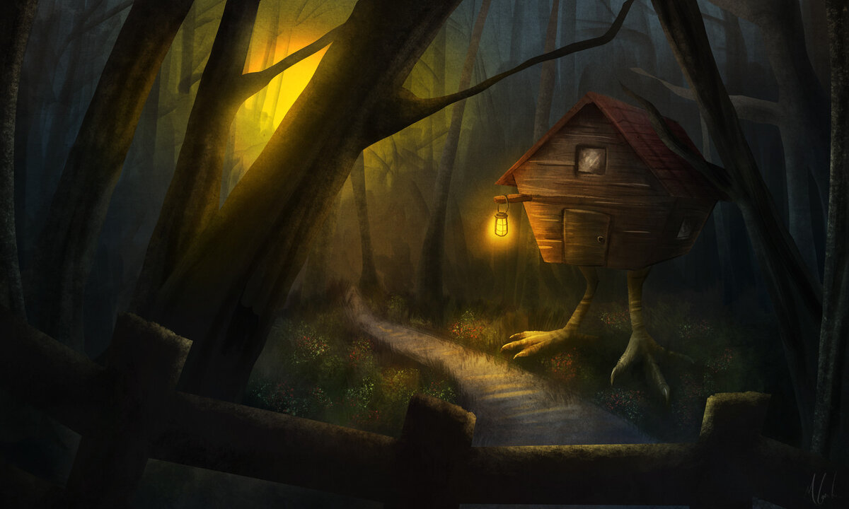 Домик уже встал на свои курьи ножки и начал отряхаться от снега. Кстати, у него еще и крылья были. А иначе как бы он быстро добрался с самого севера на самый юг. Пешком только к следующему Новому году дошел бы.