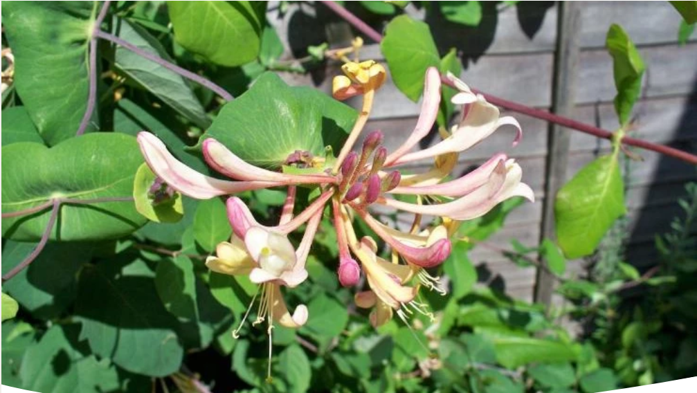 Жимолость каприфоль имеет формы с белыми цветками и с розово-красными.