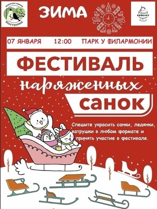 МАУ "Дирекция парков" Костромы сообщает о креативном мероприятии, которое пройдет на Рождество 7 января 2023 года в Филармоническом овраге. Там в 12:00 состоится конкурс на самые красивые санки. Участвовать в нем могут все желающие — для этого костромичам потребуется только самостоятельно разукрасить любимые санки (а также ледянки, ватрушки, каретки и пр. зимние средства передвижения). Оформить и украсить санки дополнительными приспособлениями можно используя любые формы и технологии — они должны лишь быть безопасны для окружающих зрителей и не мешать скольжению санок по снегу. Кроме того при демонстрации санок в них обязательно должен находиться пассажир, которого участники санного шоу должны будут прокатить вокруг елки.. Презентация разукрашенных санок должна продолжаться 2 минуты — авторы санного шедевра могут рассказать о своем средстве передвижения в любой форме: как личным монологом, так и выступлением группы поддержки (буде такая соберется). Фанаты в тематических костюмах, шарфи