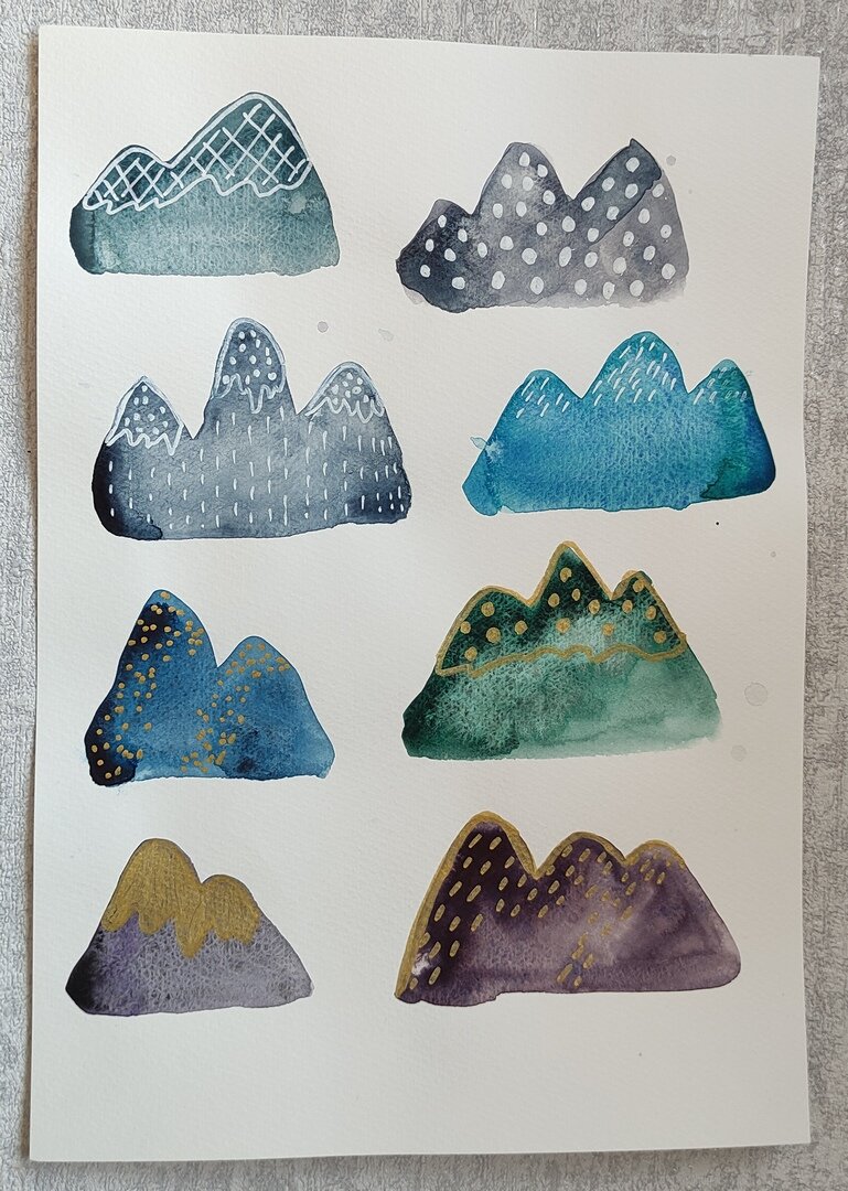Дошли руки порисовать на листочке из 45 дня.Белый и золотой маркеры Posco.Думаю эти горы вырежу, чтобы были отдельно для коллажей.у сложу отдельными элементами в папочку.