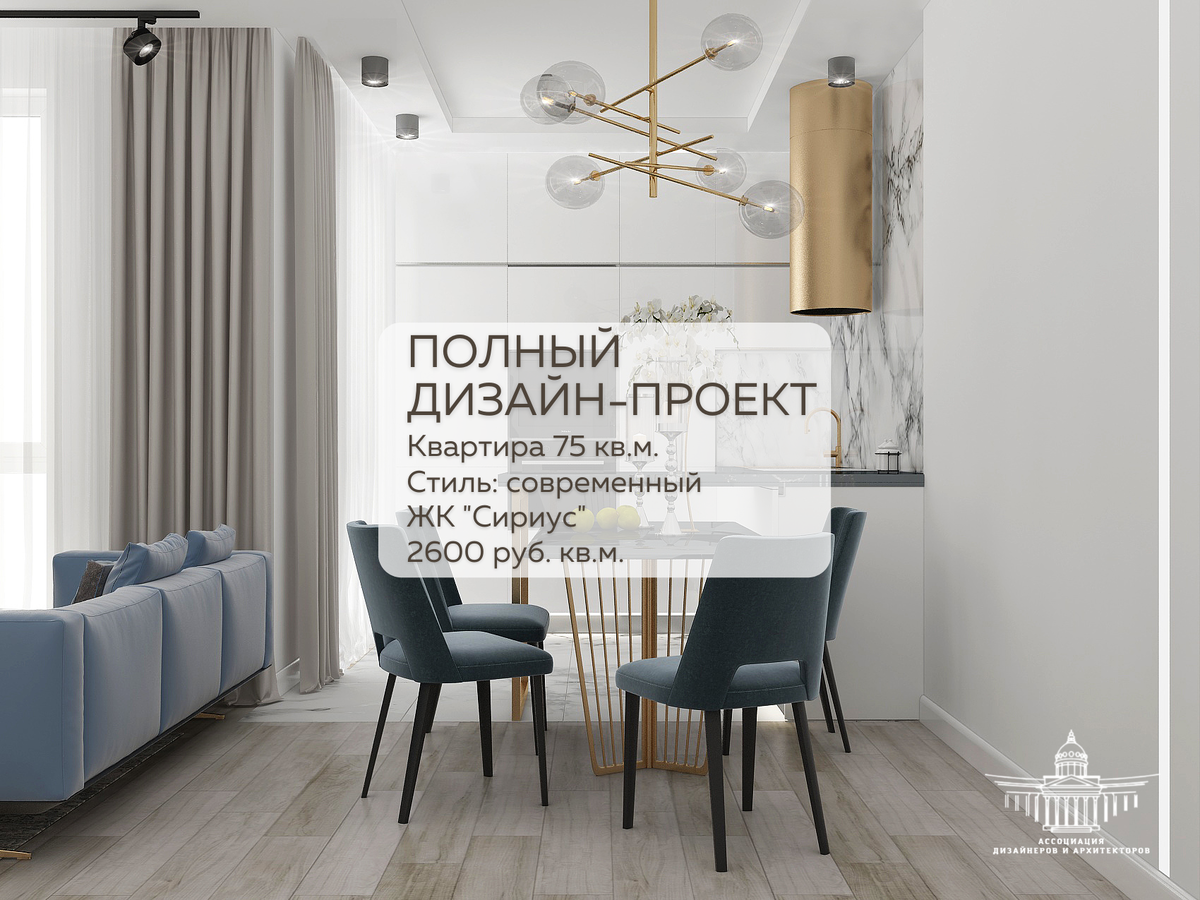 Дизайн-проект: квартира площадью 75 м2, в ЖК Сириус