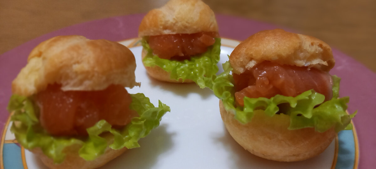 Великолепная закуска: маленькая, легкая, нежная. Так и просится в рот под бокал игристого. Ингредиенты для профитролей Ингредиенты для начинки Делаем тесто. В сотейник наливаем молоко и воду, кладем сливочное масло, соль и доводим до кипения. Затем всыпаем сразу всю муку и быстро замешиваем тесто Как только тесто соберется в комок, добавляем по одному разболтанные яйца и тщательно перемешиваем Перекладываем тесто в кондитерский мешок И отсаживаем на противень небольшие шарики(они увеличатся в размере). Если нет кулинарного мешка, то можно это сделать чайной ложкой. Выпекаем в духовке 25-30 мин.при температуре 200 ° Даем профитролям остыть, делаем небольшой надрез Намазываем творожным сыром, сверху кладем листик салата На салат рыбу(я скрутила ее рулетиками). Закуска готова! Приятного аппетита! Оставляйте комментарии и подписывайтесь на канал. Буду очень благодарна.